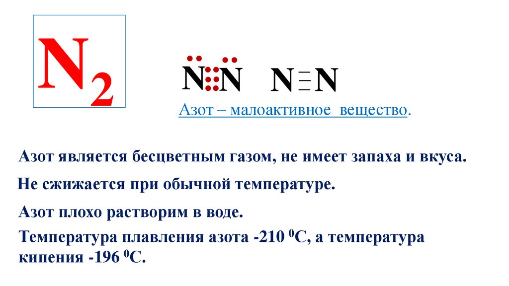 Азот является бесцветным газом, не имеет запаха и вкуса.