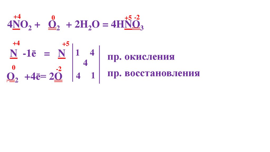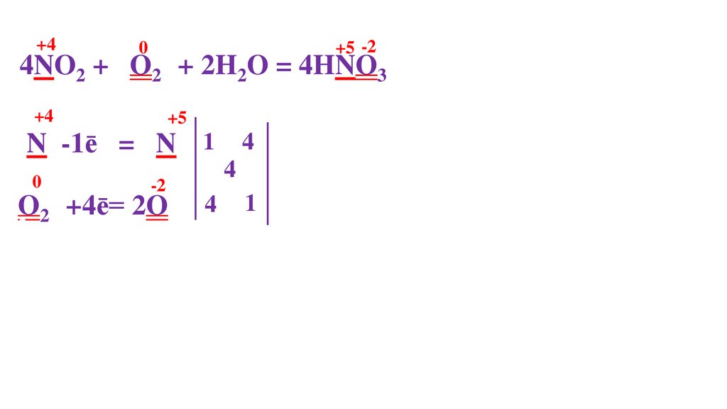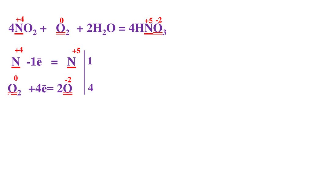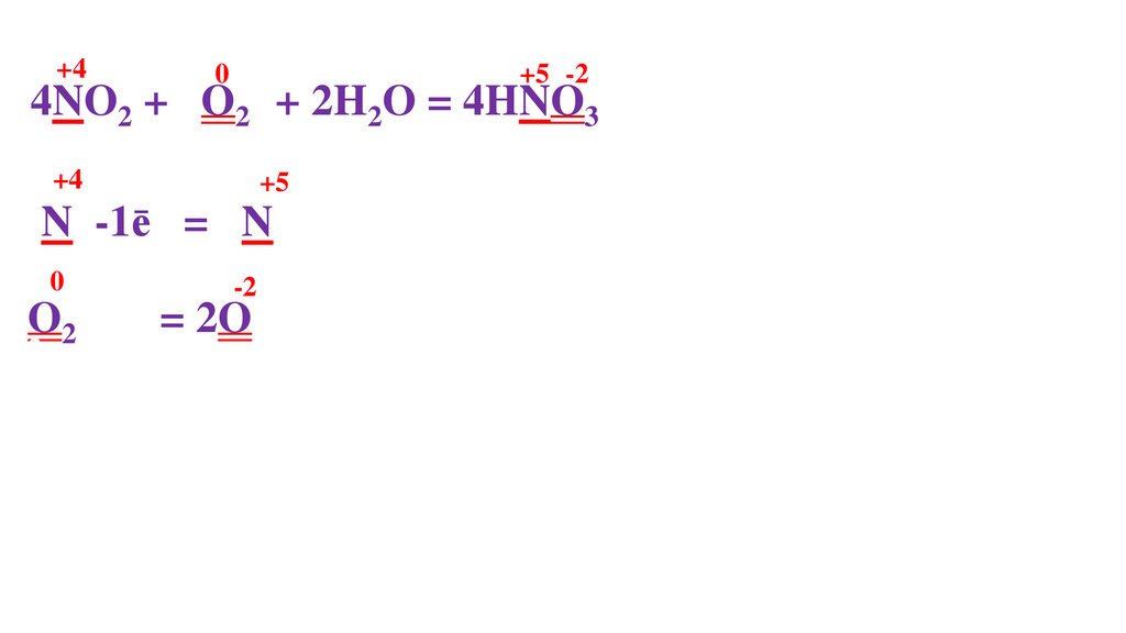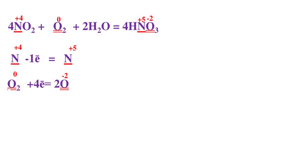 4NO2 + O20 + 2H2O = 4HNO3-2