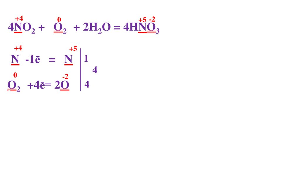 +44NO2 + O20 + 2H2O = 4HNO3-2