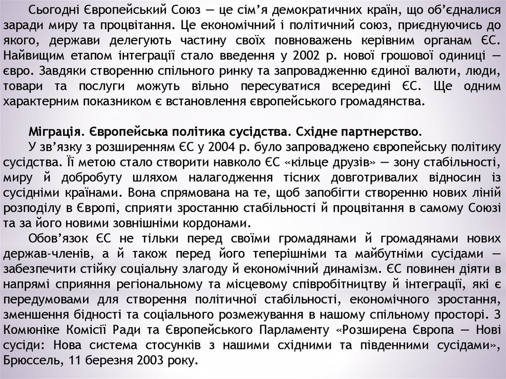 Сьогодні Європейський Союз — це сім’я демократичних країн, що об’єдналисязаради миру та процвітання. Це економічний і політичний союз, приєднуючись до
