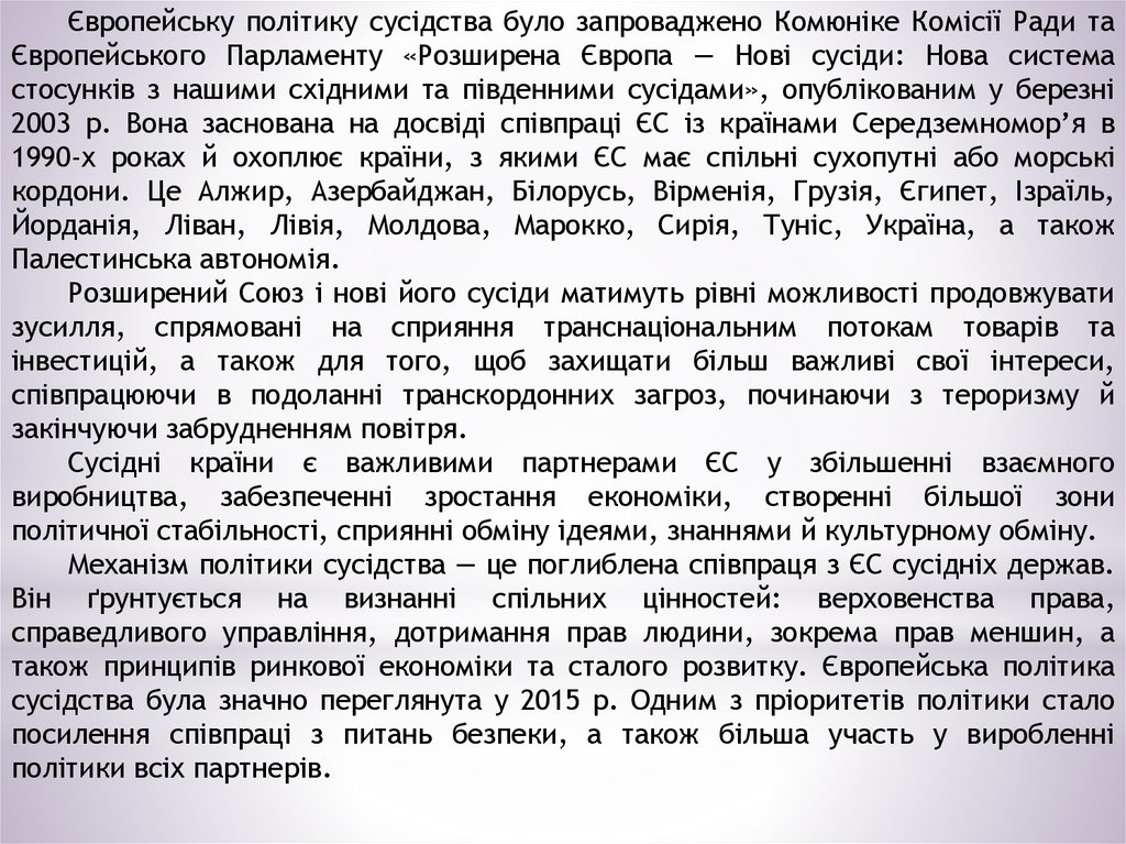 Механізм політики сусідства — це поглиблена співпраця з ЄС сусідніх держав.
