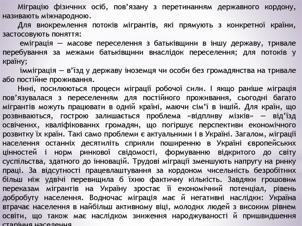 добробуту населення. Водночас міграція має й негативні наслідки: Україна