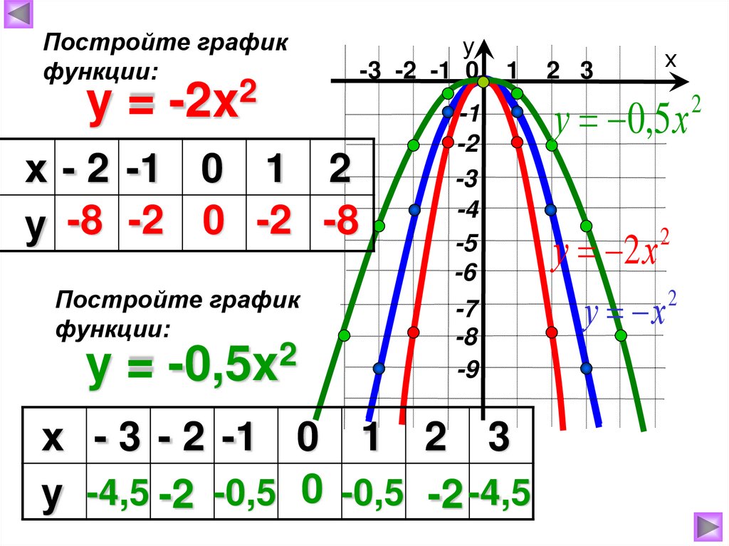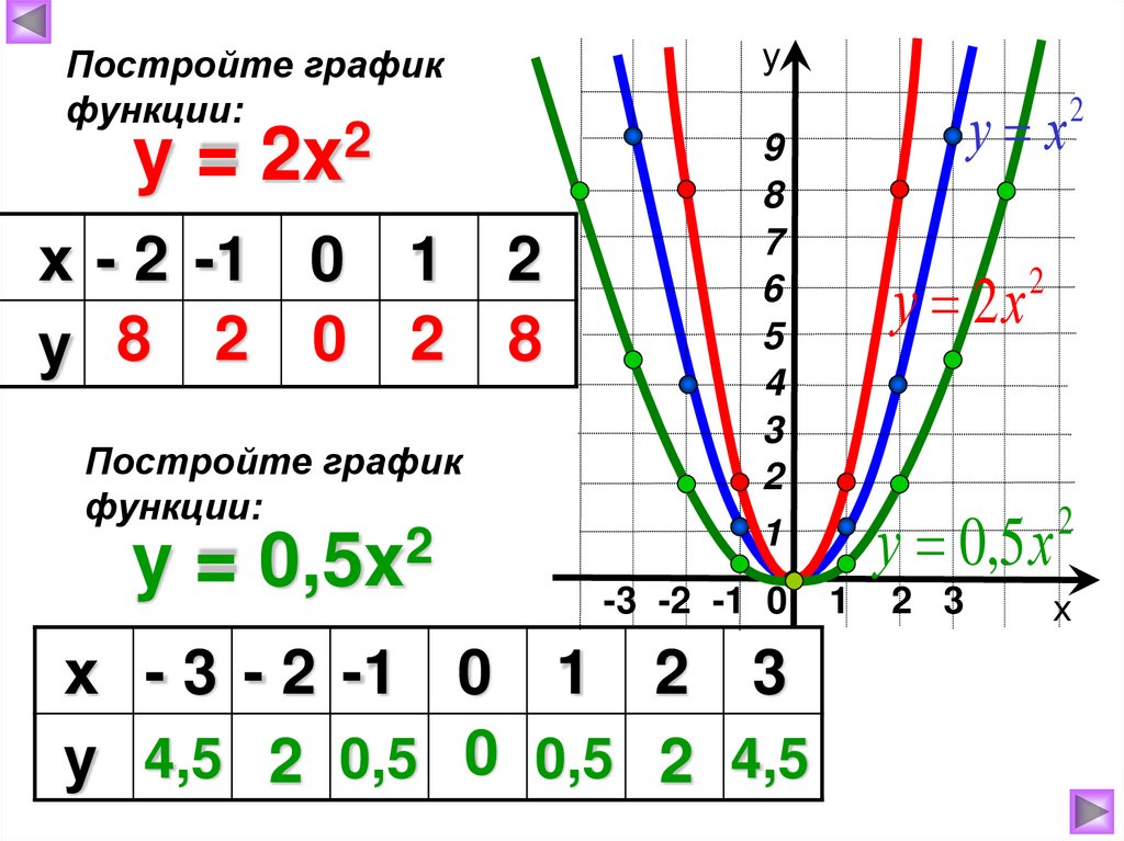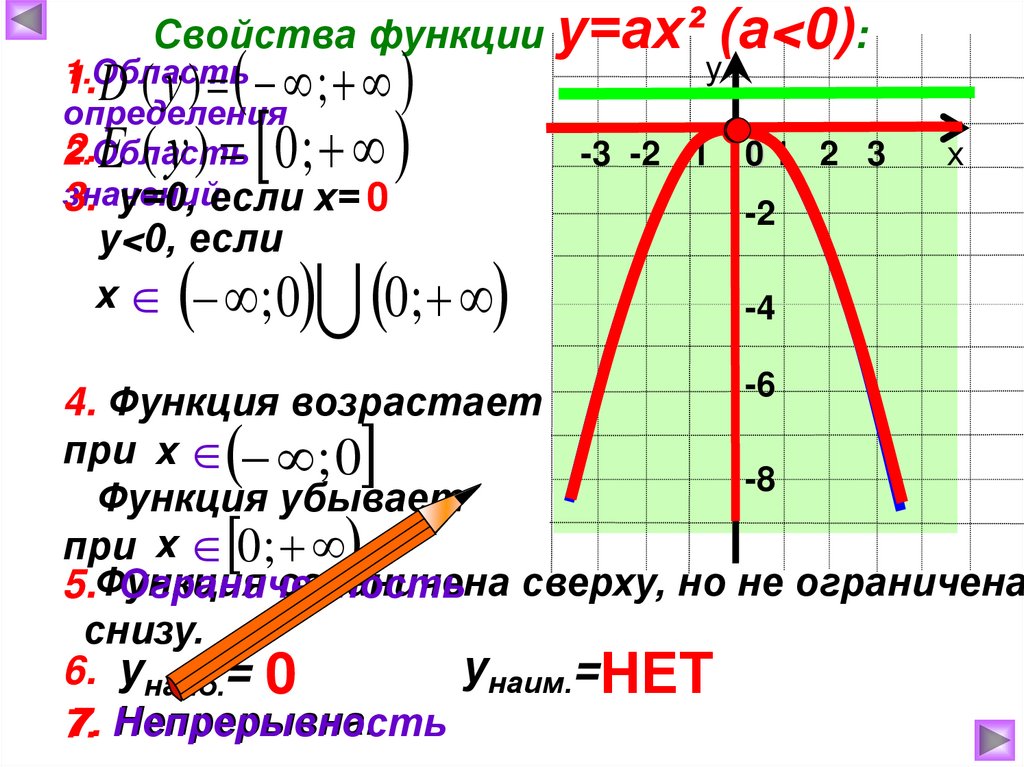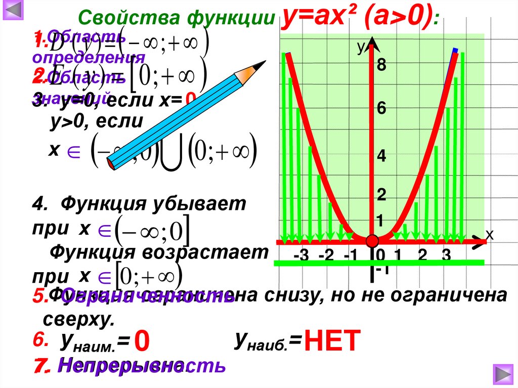Свойства функции у=ах² (а>0):D ( у ) ;