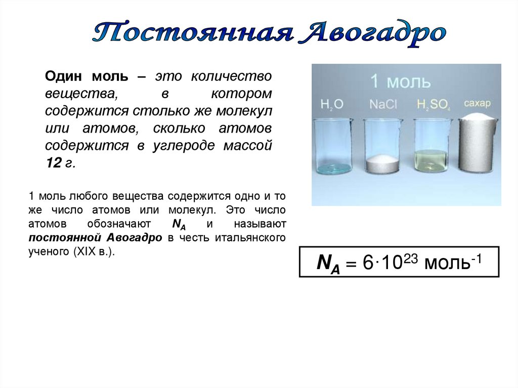 Авогадро NA, т. е. к числу молекул в 1 моль