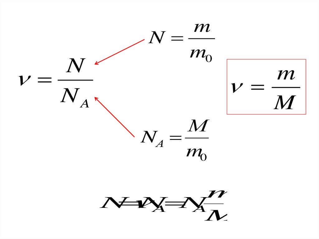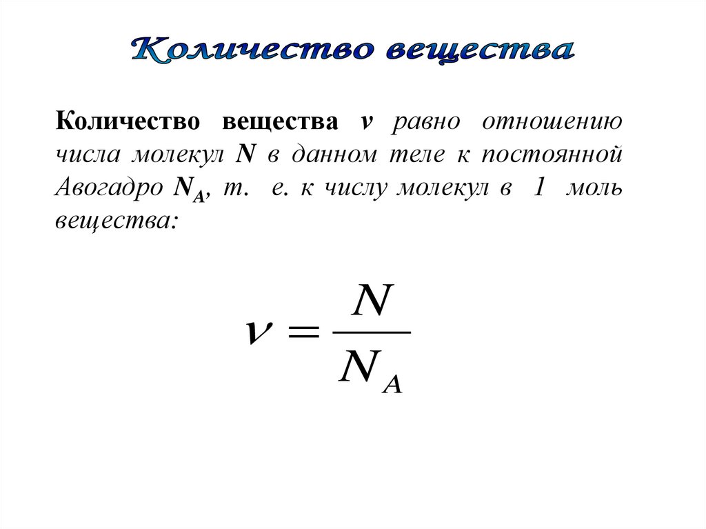 Количество вещества ν равно отношениючисла молекул N в данном теле к постоянной