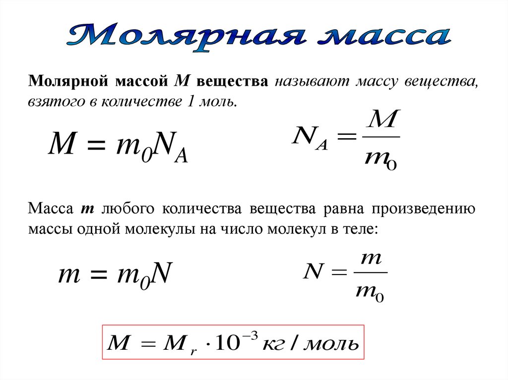 Масса т любого количества вещества равна произведению
