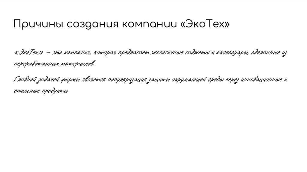 Причины создания компании «ЭкоТех»«ЭкоТех» — это компания, которая предлагает экологичные гаджеты и аксессуары, сделанные из