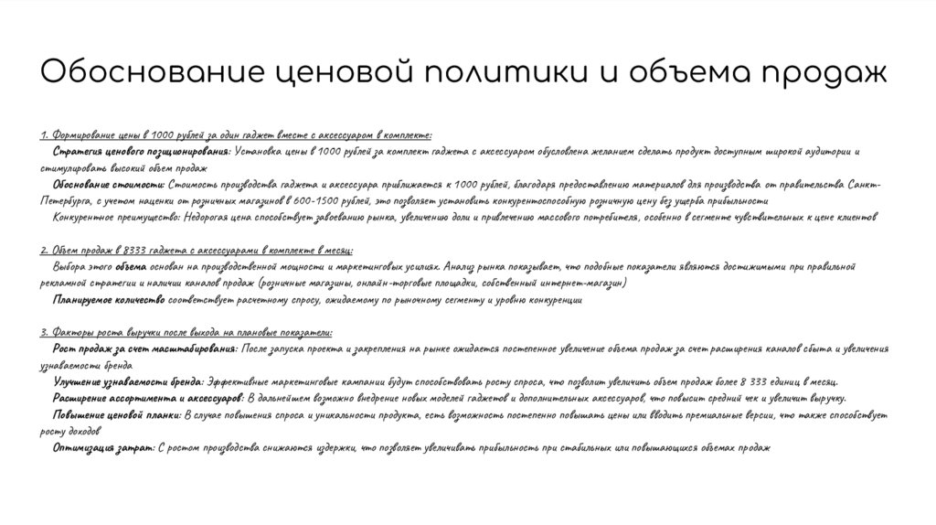 Улучшение узнаваемости бренда: Эффективные маркетинговые кампании будут способствовать росту спроса, что позволит увеличить объем продаж более 8 333 единиц в месяц.