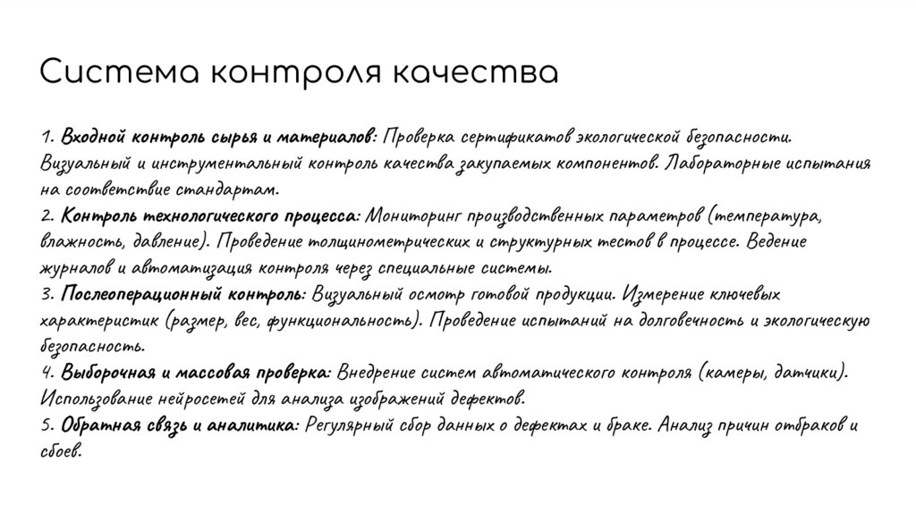 Система контроля качества1. Входной контроль сырья и материалов: Проверка сертификатов экологической безопасности.