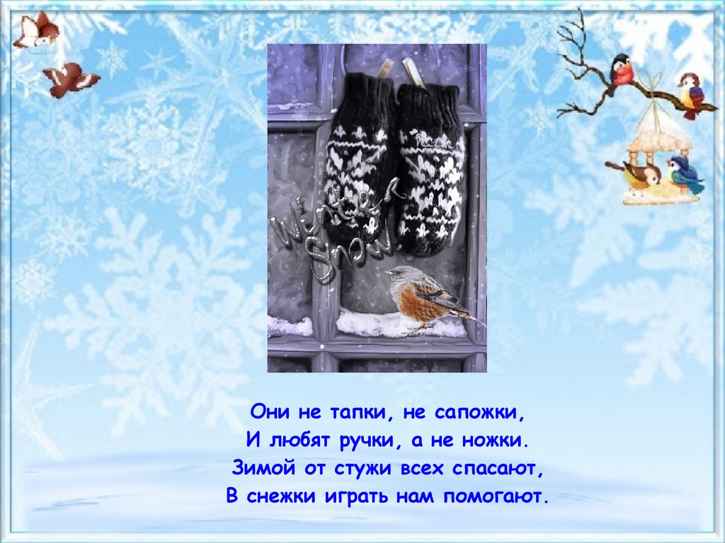 Они не тапки, не сапожки,И любят ручки, а не ножки.