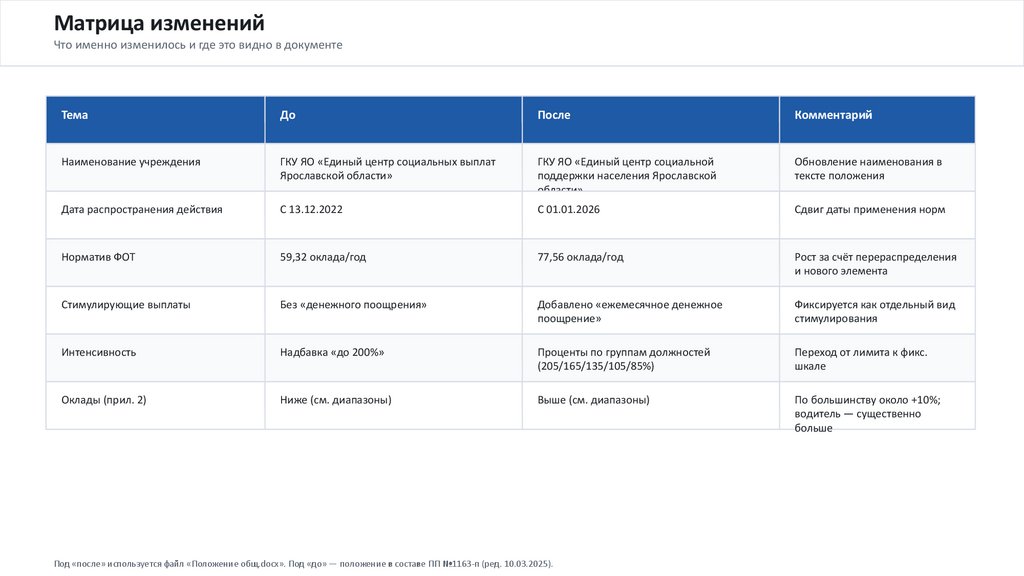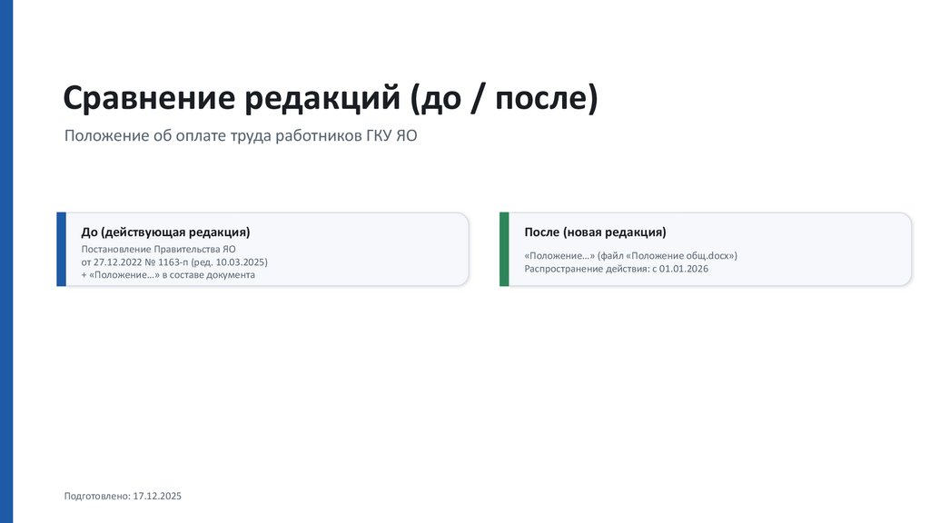 Сравнение редакций (до / после)Положение об оплате труда работников ГКУ ЯО