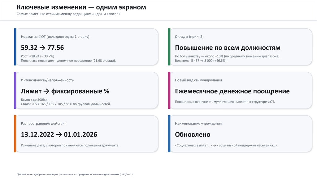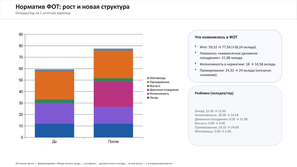 • Интенсивность в нормативе: 18 → 14,58 оклада.