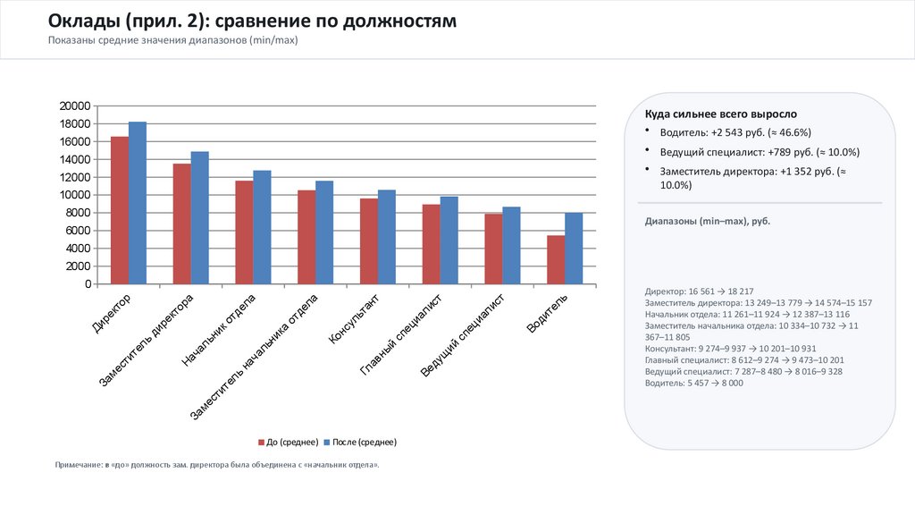 Сверить оклады по приложению 2 и корректно отразить диапазоны для должностей с вилкой.
