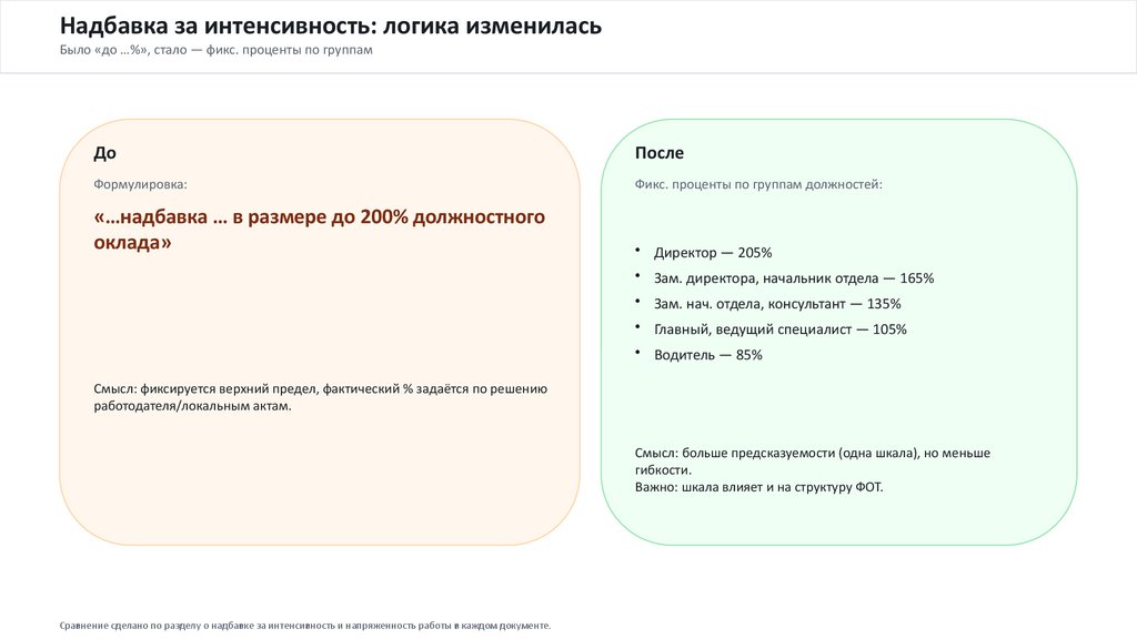 Надбавка за интенсивность: логика измениласьБыло «до …%», стало — фикс. проценты по группам