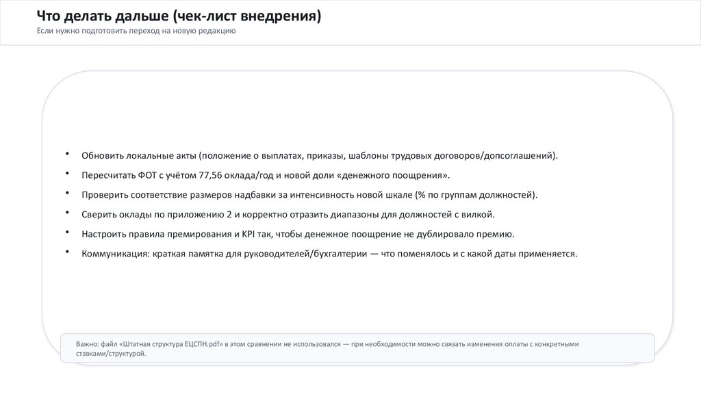 Важно: файл «Штатная структура ЕЦСПН.pdf» в этом сравнении не использовался — при необходимости можно связать изменения оплаты с конкретными
