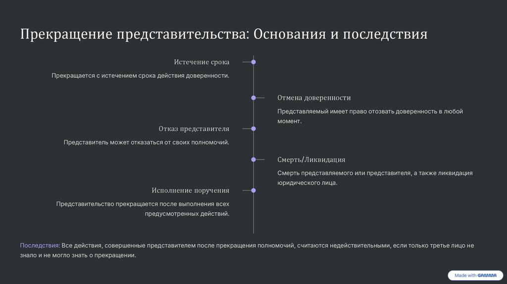 Последствия: Все действия, совершенные представителем после прекращения полномочий, считаются недействительными, если только третье лицо не