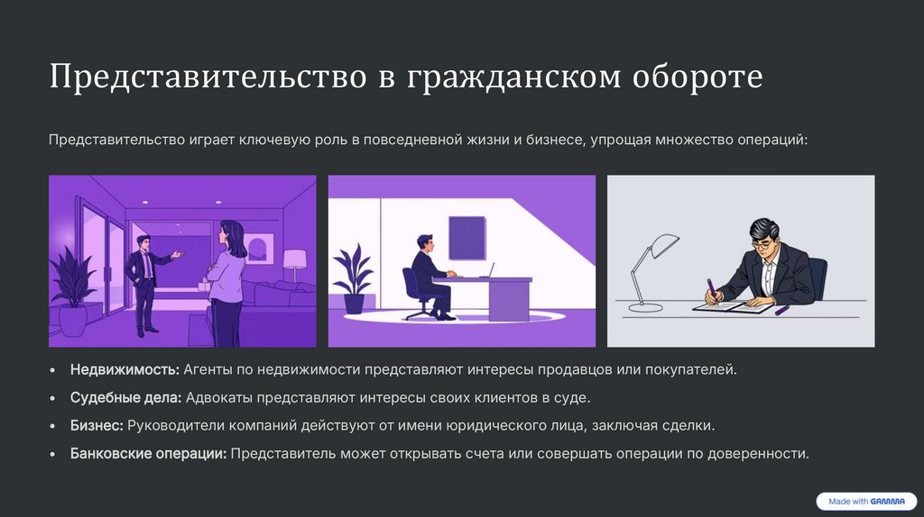 Представительство в гражданском оборотеПредставительство играет ключевую роль в повседневной жизни и бизнесе, упрощая множество операций: