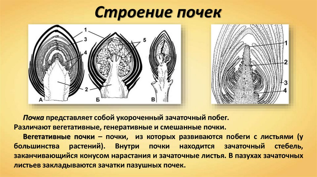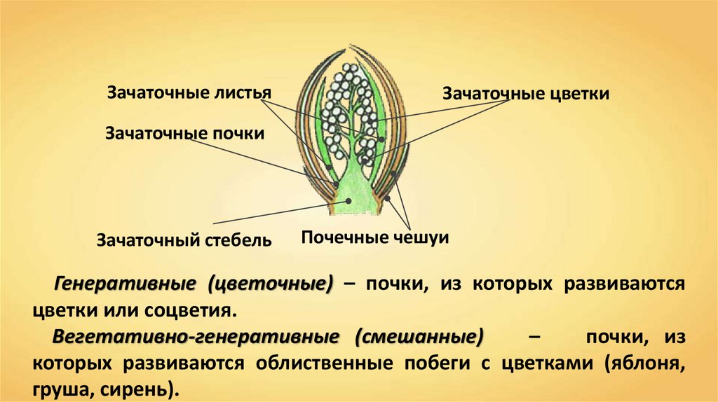Различают вегетативные, генеративные и смешанные почки.