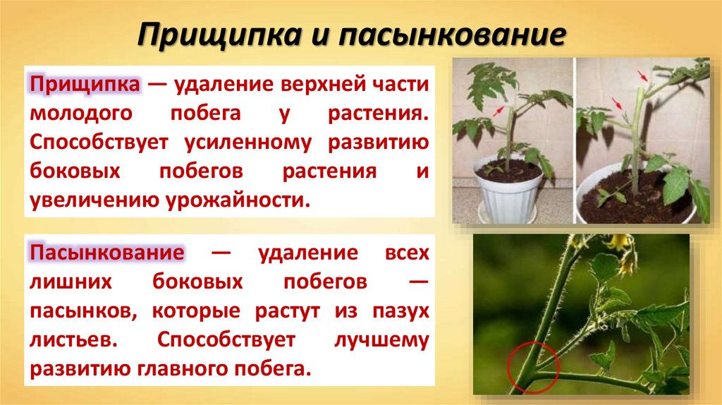 Прищипка и пасынкованиеПрищипка — удаление верхней части