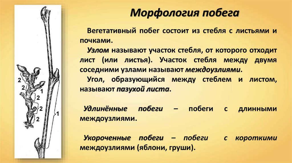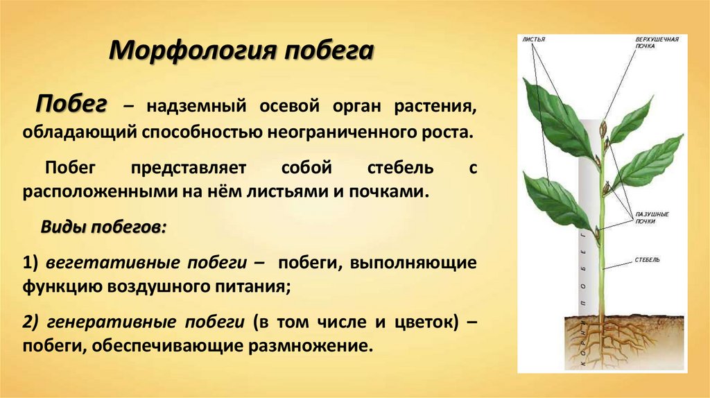 Морфология побегаВегетативный побег состоит из стебля с листьями и