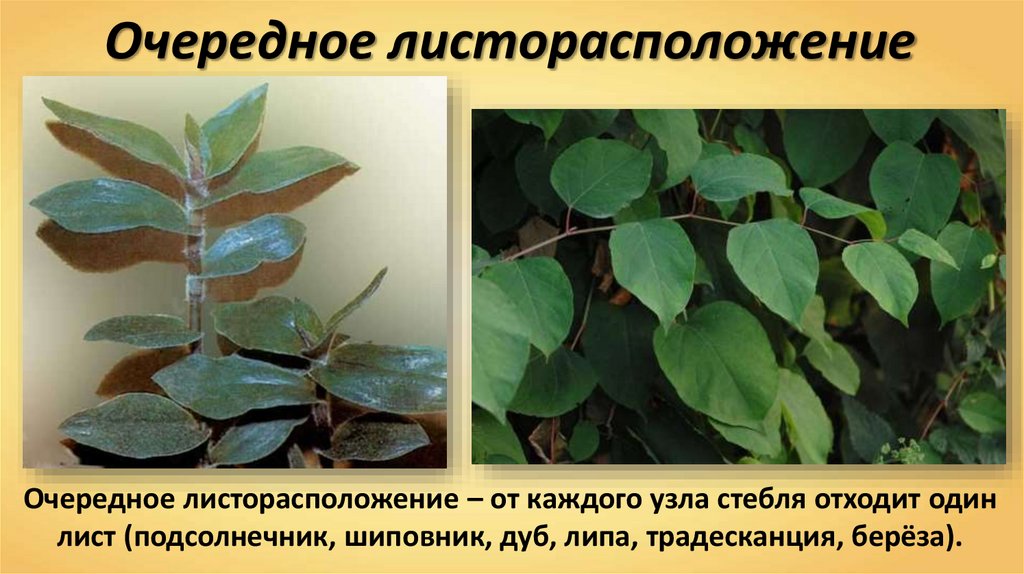 Очередное листорасположениеОчередное листорасположение – от каждого узла стебля отходит один
