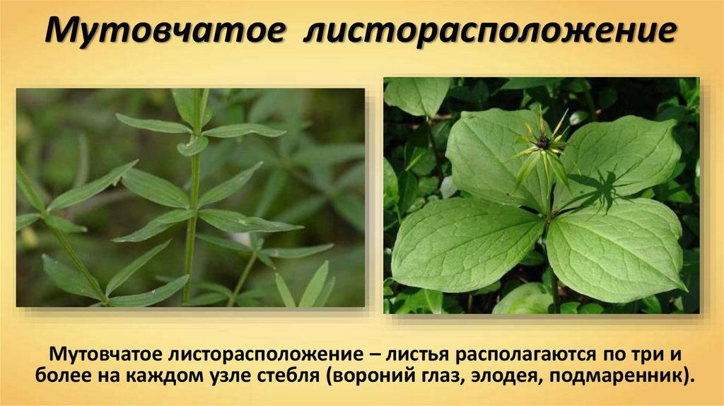 Мутовчатое листорасположениеМутовчатое листорасположение – листья располагаются по три и