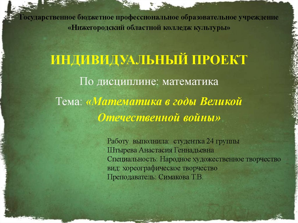 Тема: «Математика в годы Великой