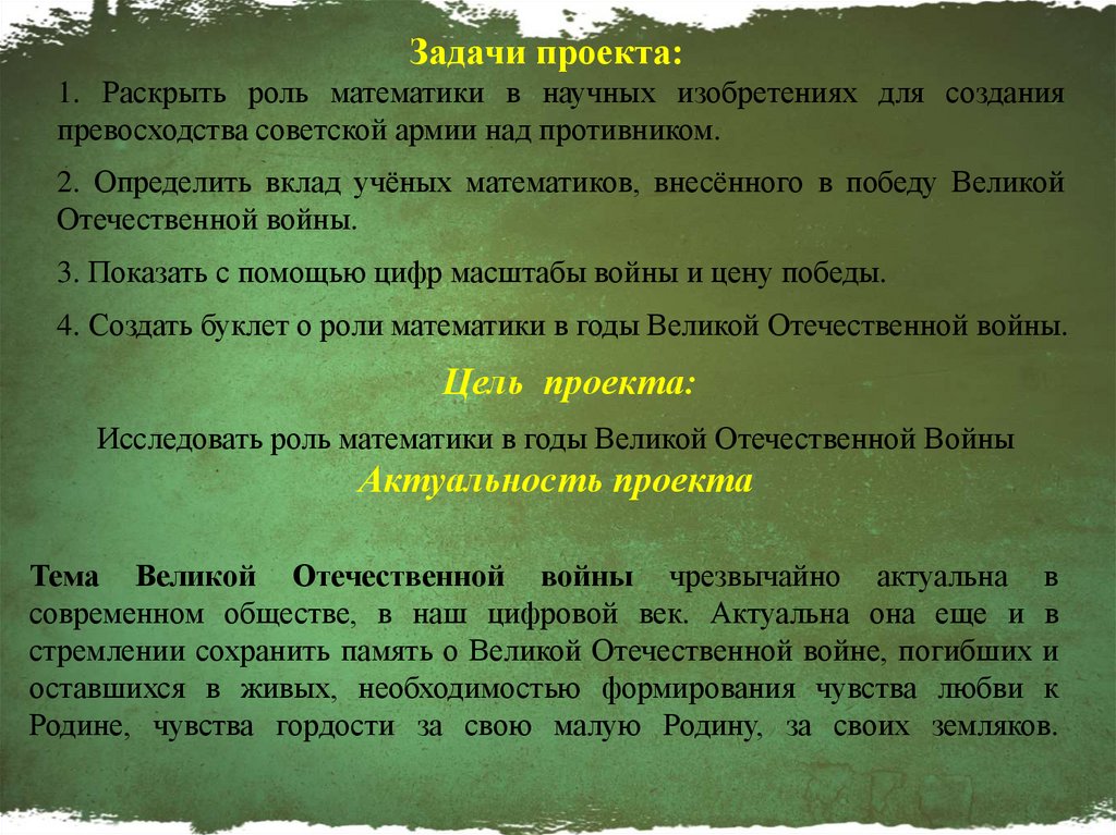 4. Создать буклет о роли математики в годы Великой Отечественной войны.