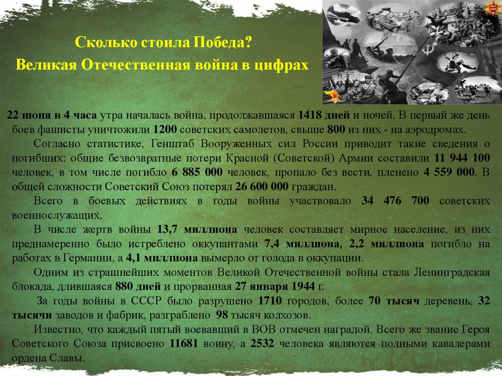3. Показать с помощью цифр масштабы войны и цену победы.