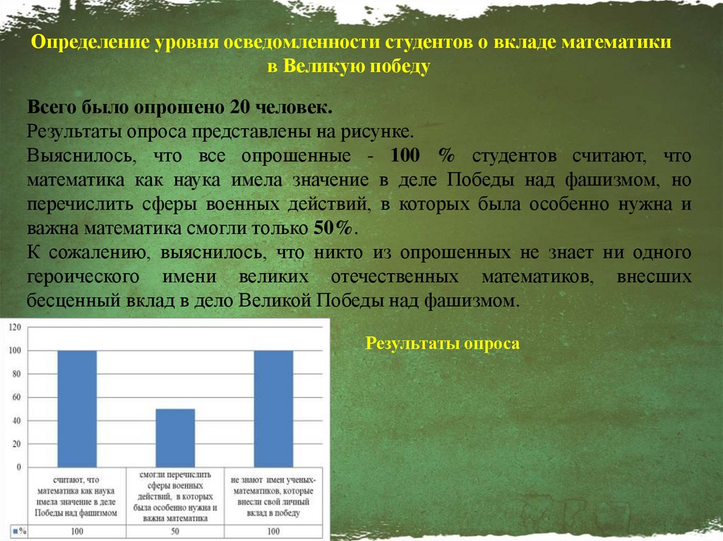 Определение уровня осведомленности студентов о вкладе математикив Великую победу