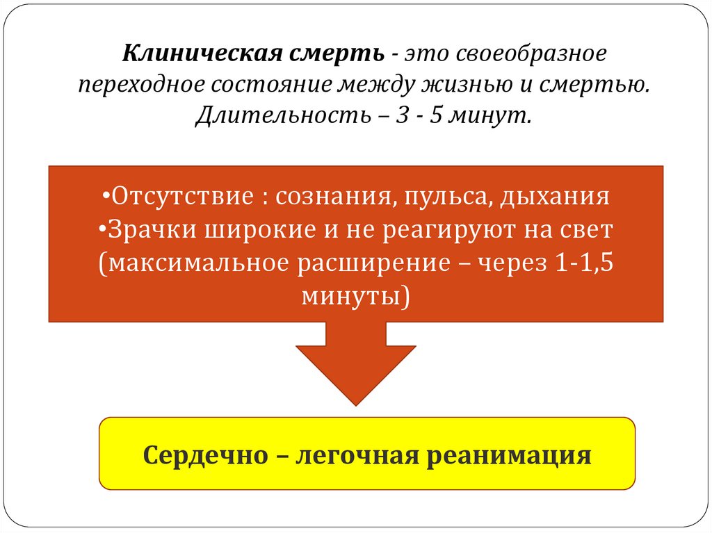 Клиническая смерть - это своеобразноепереходное состояние между жизнью и смертью.
