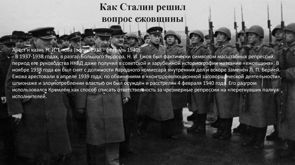 Арест и казнь Н. И. Ежова (осень 1938 - февраль 1940):
