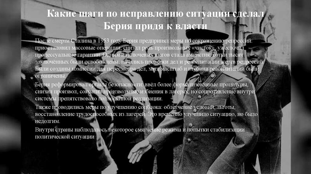 Какие шаги по исправлению ситуации сделалБерия придя к власти