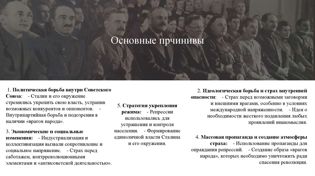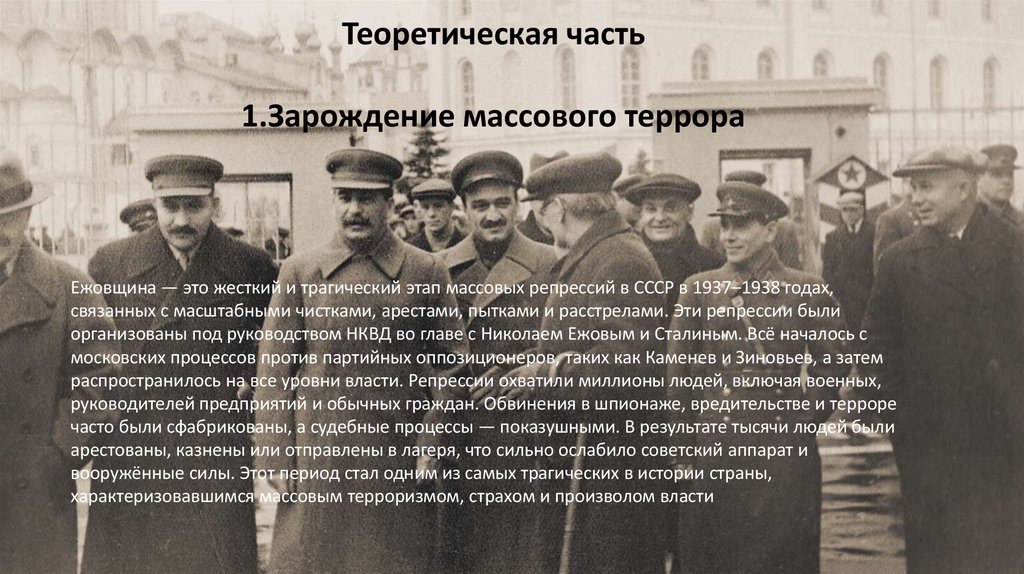 связанных с масштабными чистками, арестами, пытками и расстрелами. Эти репрессии были