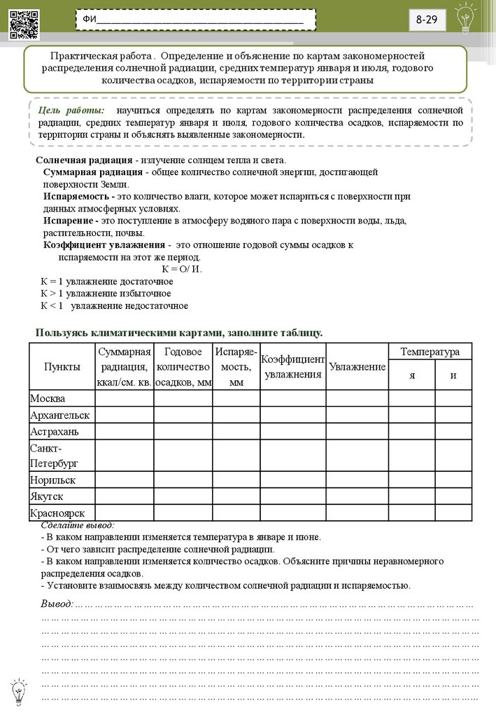 Цель работы: научиться определять по картам закономерности распределения солнечной