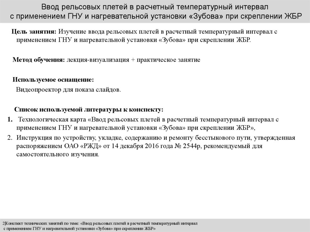 2|Конспект технических занятий по теме: «Ввод рельсовых плетей в расчетный температурный интервал