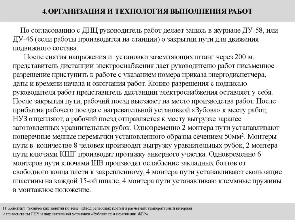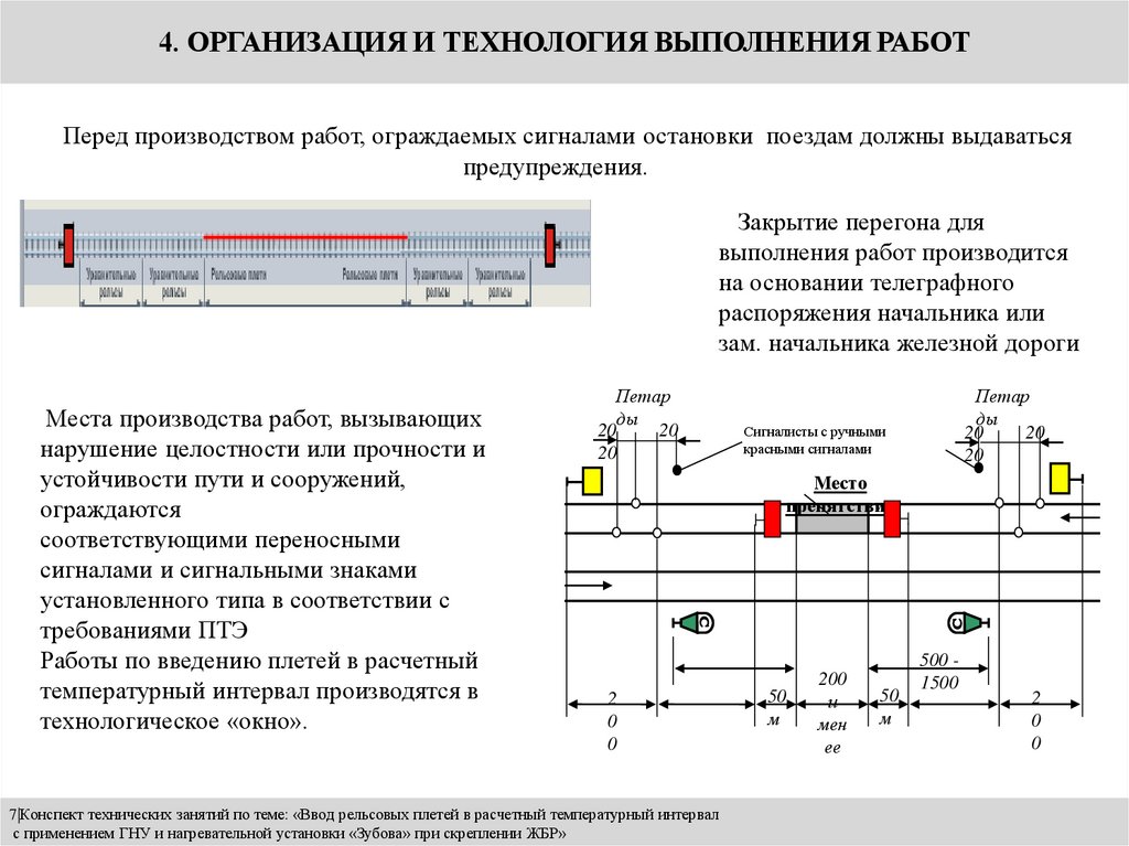 4. ОРГАНИЗАЦИЯ И ТЕХНОЛОГИЯ ВЫПОЛНЕНИЯ РАБОТПеред производством работ, ограждаемых сигналами остановки поездам должны выдаваться
