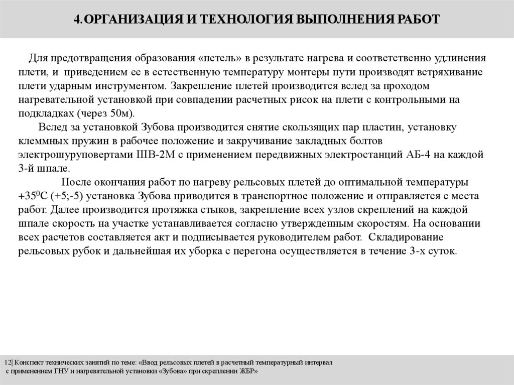 4|Конспект технических занятий по теме: «Ввод рельсовых плетей в расчетный температурный интервал