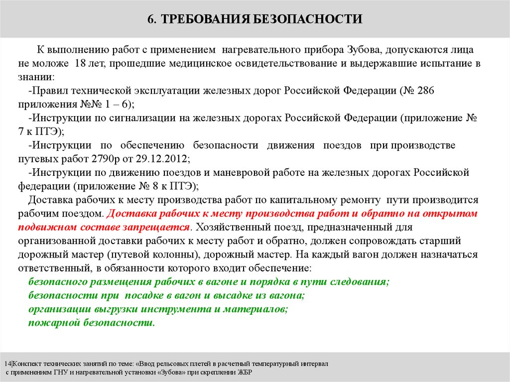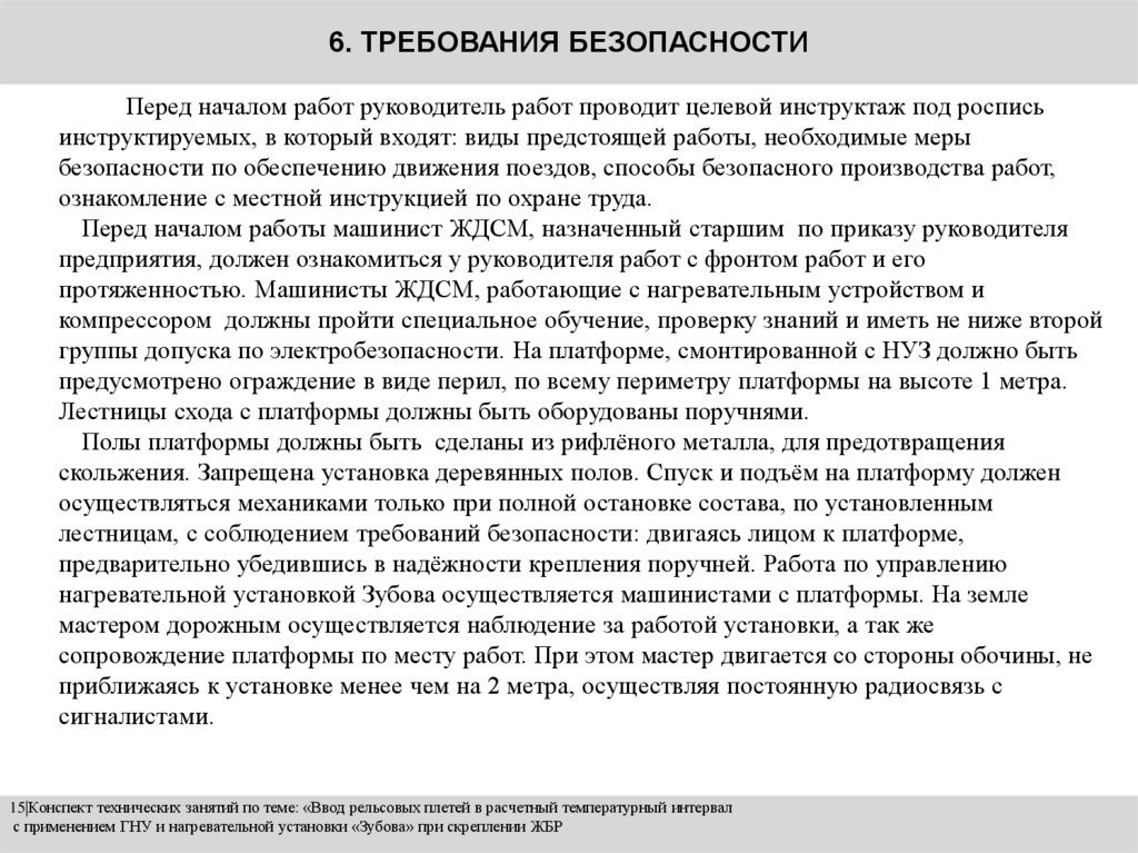 6|Конспект технических занятий по теме: «Ввод рельсовых плетей в расчетный температурный интервал