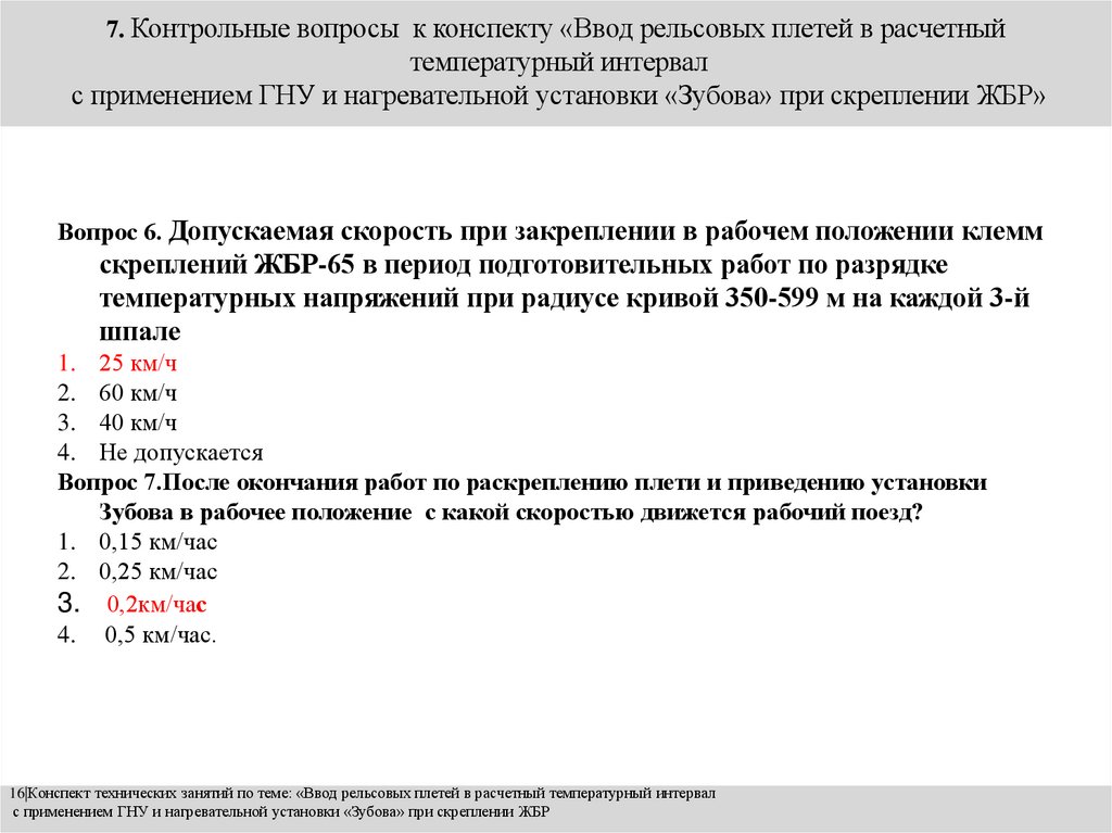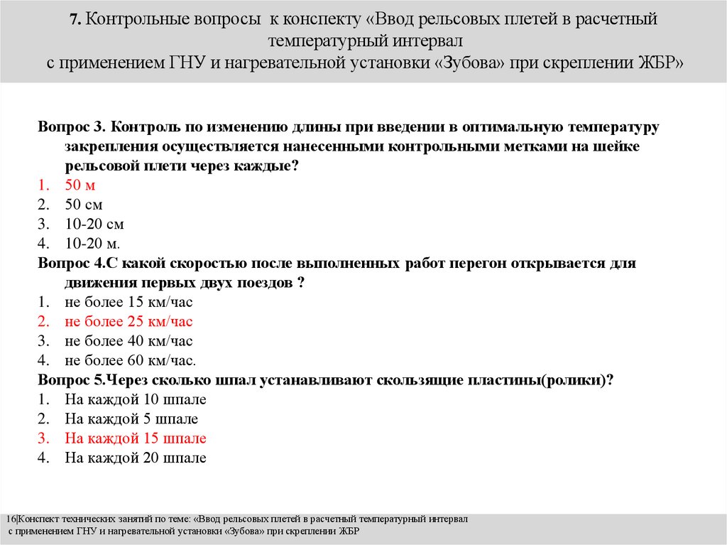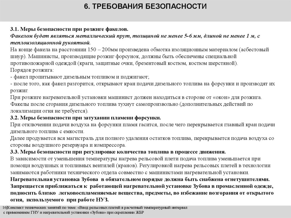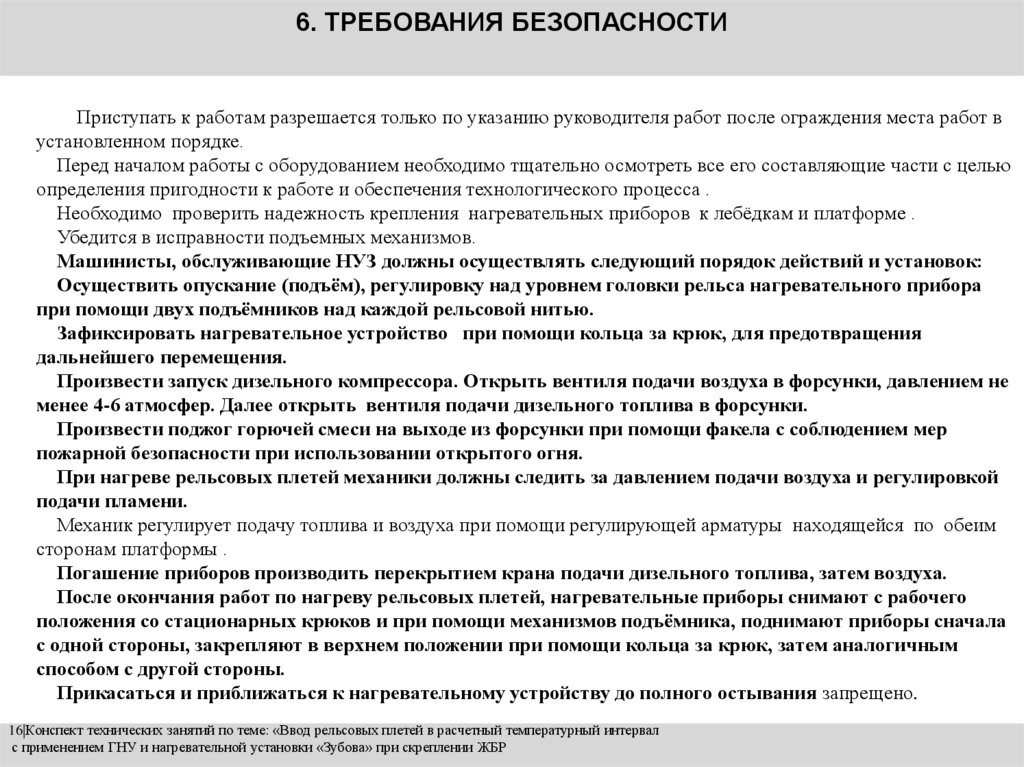16|Конспект технических занятий по теме: «Ввод рельсовых плетей в расчетный температурный интервал