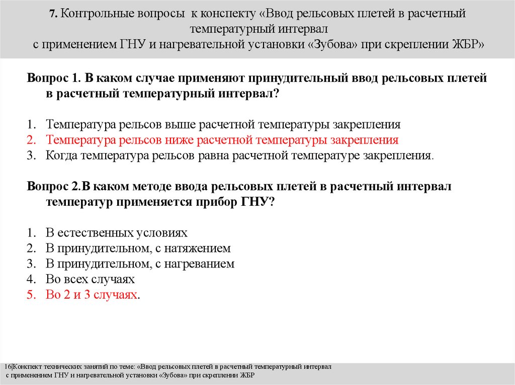 7. Контрольные вопросы к конспекту «Ввод рельсовых плетей в расчетныйтемпературный интервал