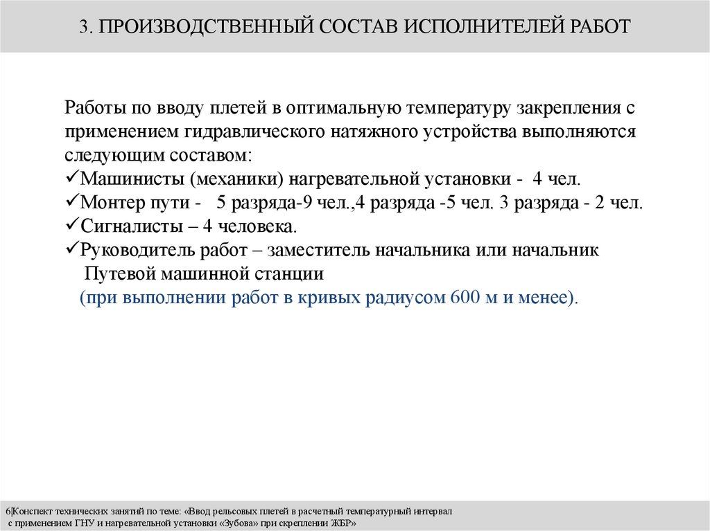 3. ПРОИЗВОДСТВЕННЫЙ СОСТАВ ИСПОЛНИТЕЛЕЙ РАБОТРаботы по вводу плетей в оптимальную температуру закрепления с