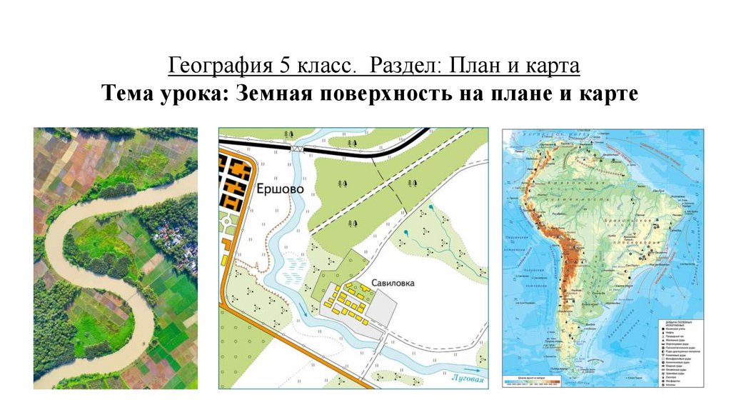 1. География 5 класс. Раздел: План и карта Тема урока: Земная поверхность на плане и карте