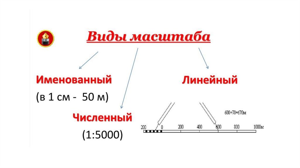 3. Масштаб - это число, которое показывает, во сколько раз расстояния на местности уменьшены или увеличены при изображении их на
