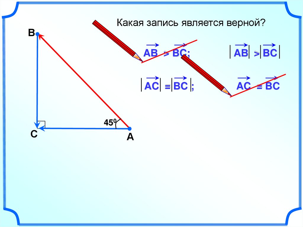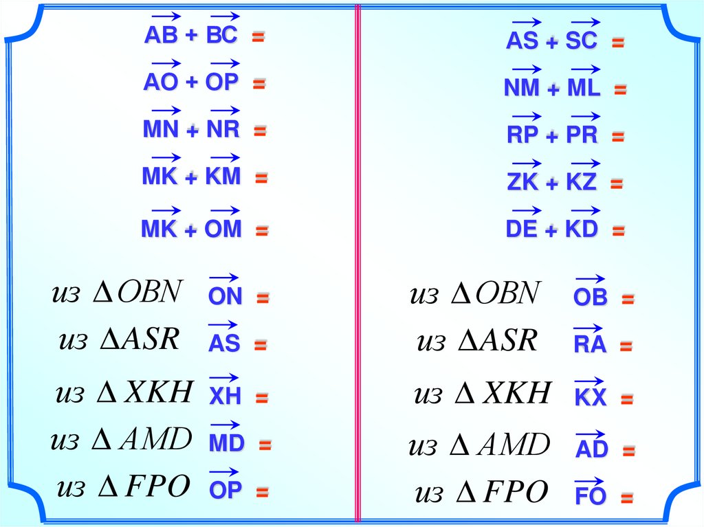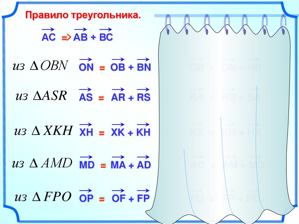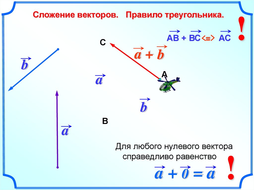 Сложение векторов. Правило треугольника.АВ + ВС = АС