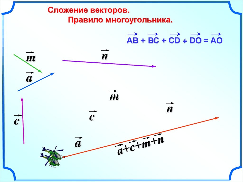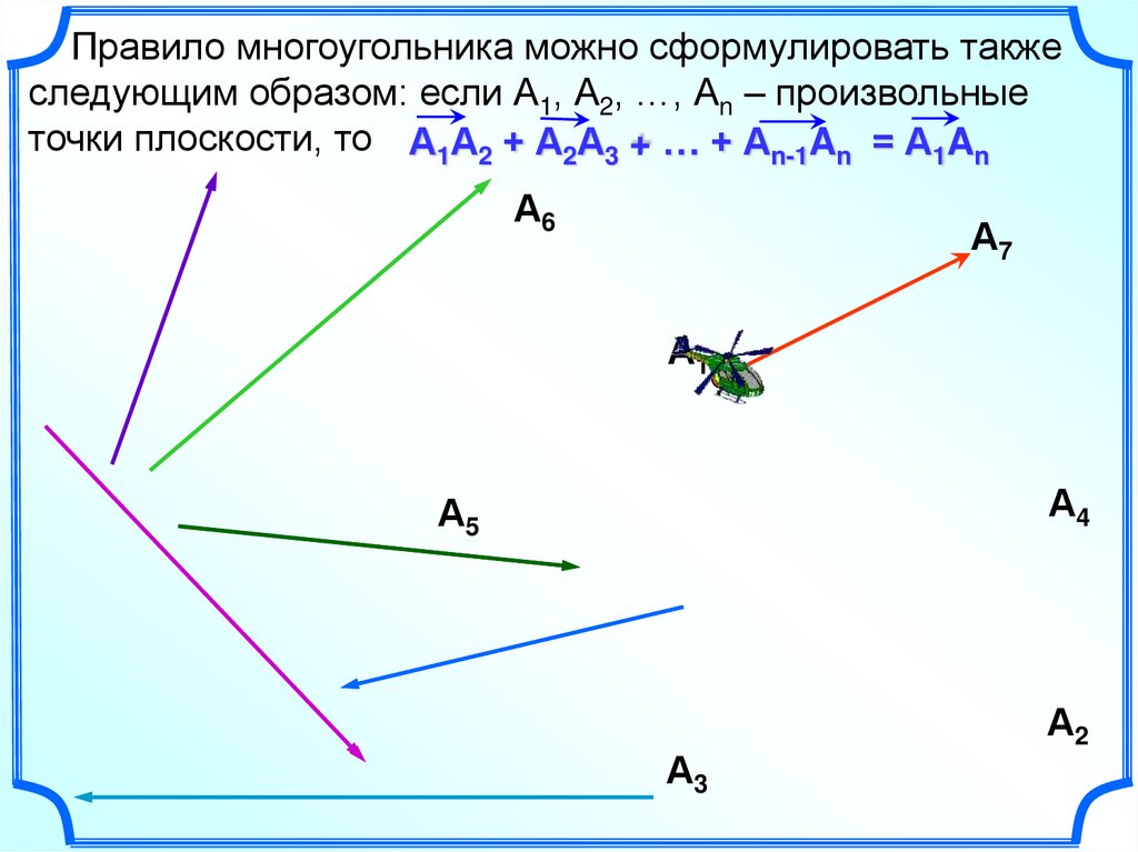 точки плоскости, то А1А2 + А2А3 + … + Аn-1An = А1An