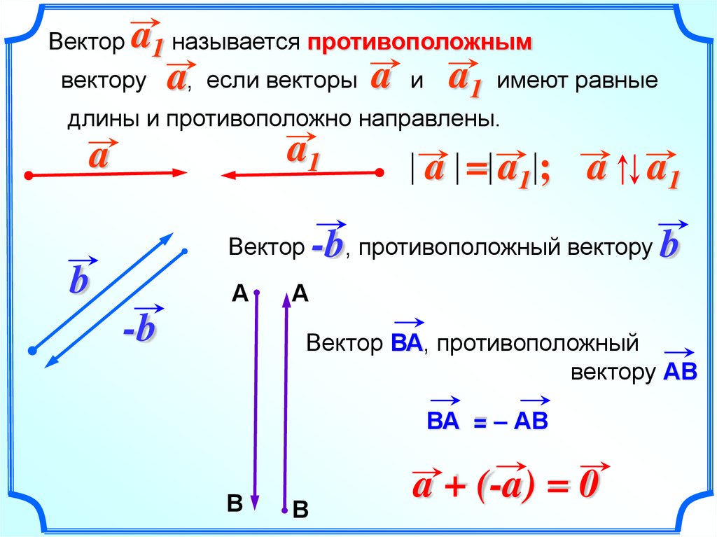 a1 называется противоположнымвектору a, если векторы a и a1 имеют равные