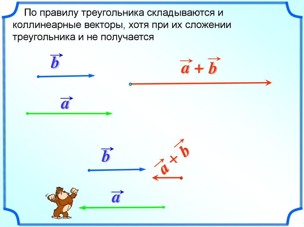 По правилу треугольника складываются иколлинеарные векторы, хотя при их сложении