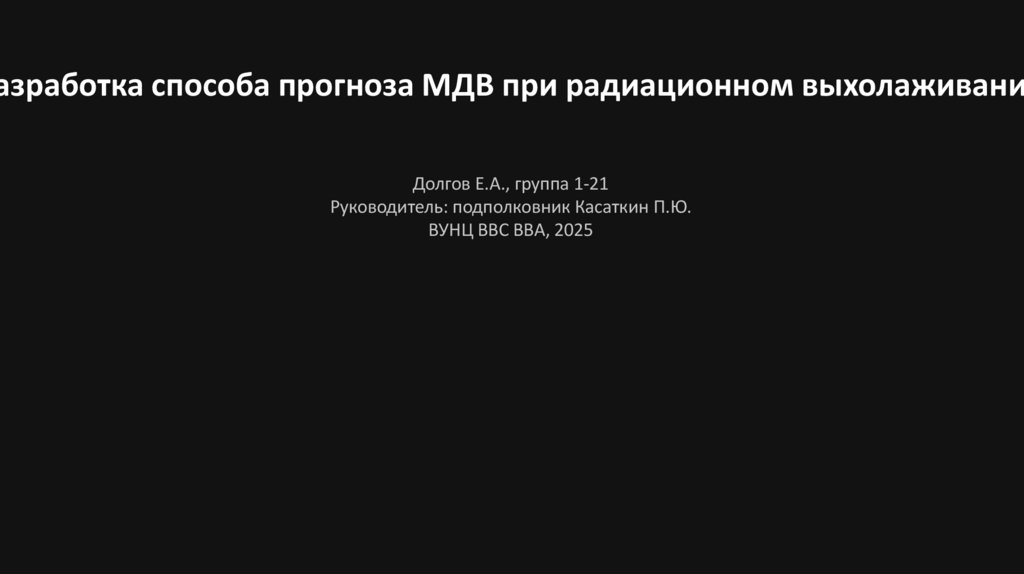 азработка способа прогноза МДВ при радиационном выхолаживаниДолгов Е.А., группа 1-21