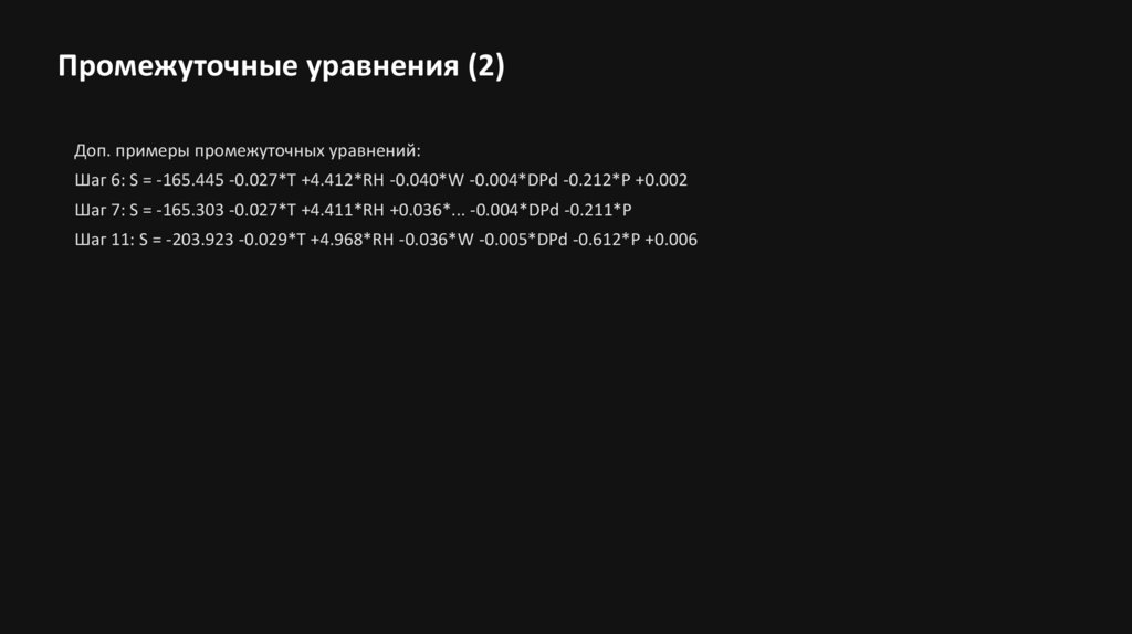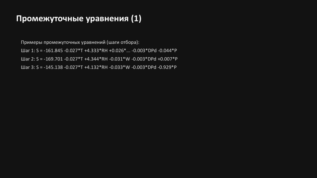Промежуточные уравнения (1)Примеры промежуточных уравнений (шаги отбора):